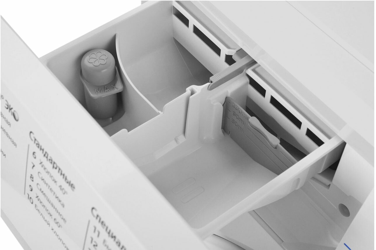 Очень много простирывает за один раз. Раньше стирала каждый день и не по одному разу. Сейчас из-за большой загрузке, максимум 4 раза в неделю. Причем даже если и перезагрузишь барабан , стиралка все хорошо прополаскает. Грязи не останется, запаха не останется, порошка тоже не будет) Лоток современный и удобный.Есть специальное разграничение для жидкого порошка. А никак в старых стиралках, если зальешь, то вытечет до начала стирки еще.