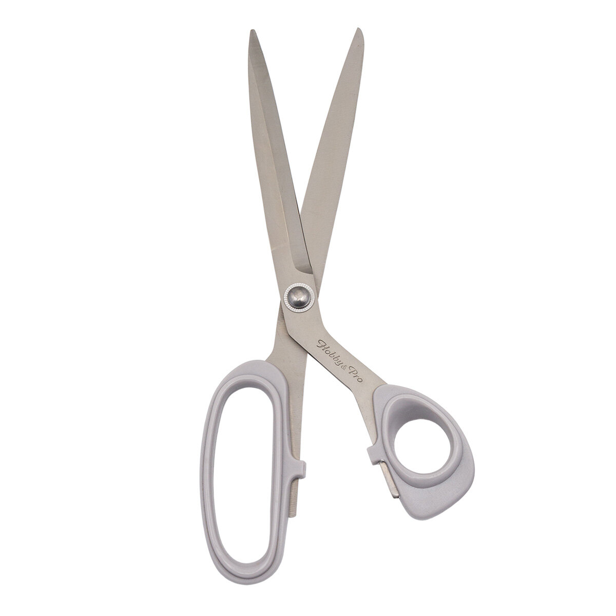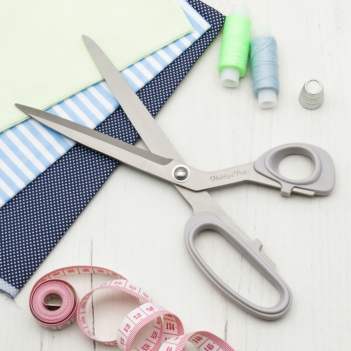 Портновские ножницы с лезвиями из нержавеющей стали и пластиковыми ручками. Подойдут для легких тканей и тканей средней плотности, а также фетра, замши, бумаги и других листовых материалов. Благодаря размеру лезвий ножницы отличаются большим захватом. Ножницы бренда Hobby&Pro;, широко известного, как производителя товаров для шитья и рукоделия, как для домашнего, так и для профессионального использования, это широчайший, постоянно обновляемый ассортимент, с оптимальным соотношением цены и качества. Предназначены для использования в быту и для офисных работ. Материал: металл, пластик.