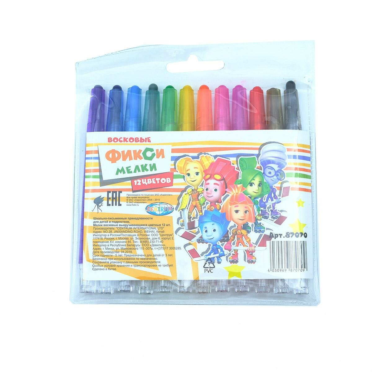 87070 Мелки восковые выкручивающиеся12 цветов 'Фиксики' CENTRUM