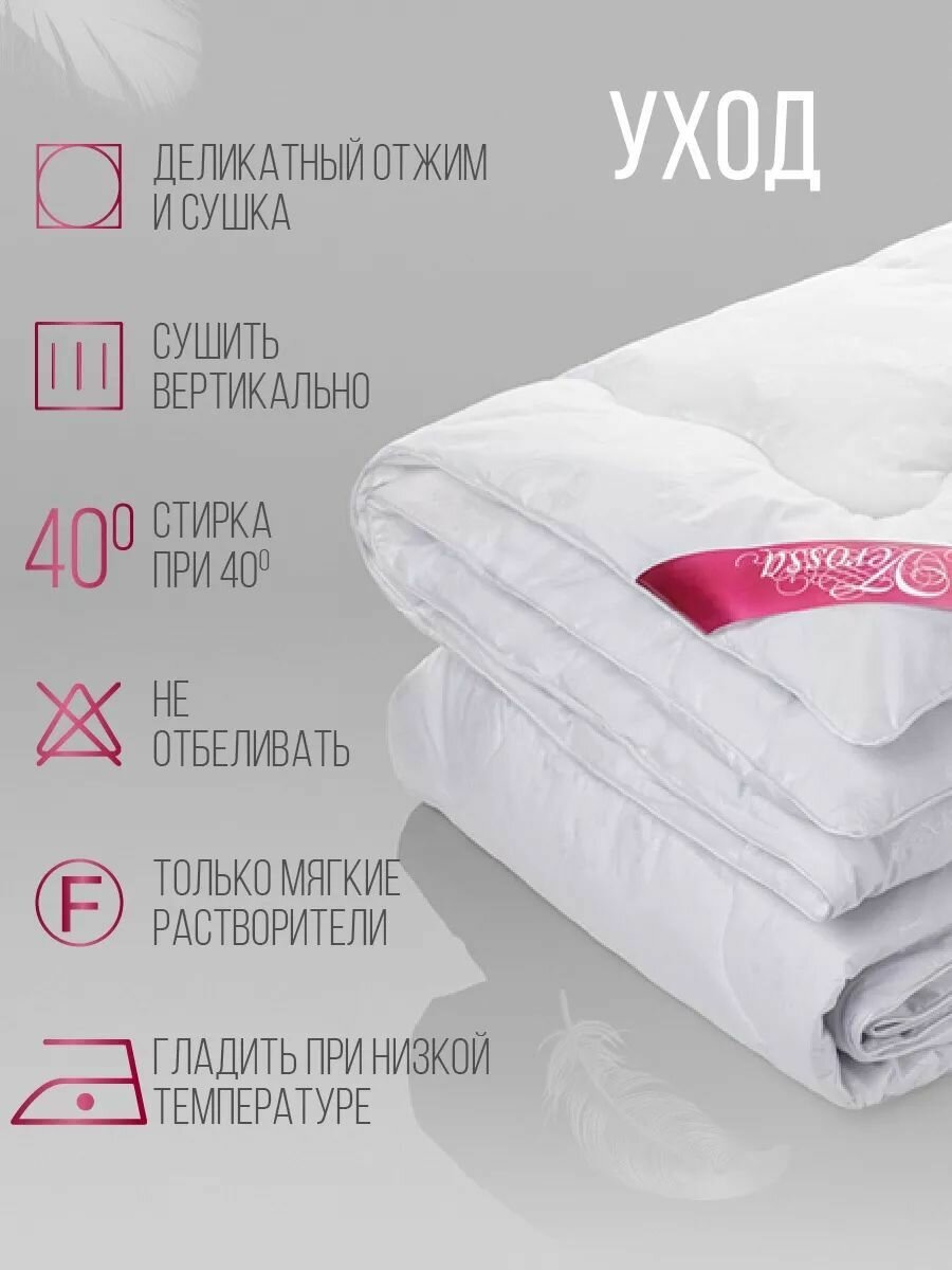 Пуходержащий перкаль верха, выполненный по европейской технологии с отделкой White on white (белое по белому) обеспечивает устойчивость к многократным стиркам и устойчивость к истиранию.