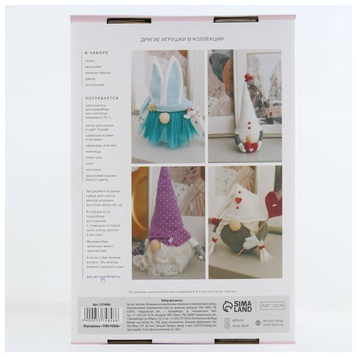 На сегодняшний день товар «5374848 Интерьерная кукла 'Гномик Альф' набор для шитья 21*0.5*29.7 см Арт Узор» можно купить с кешбеком в 1 магазине: Яндекс.Маркет