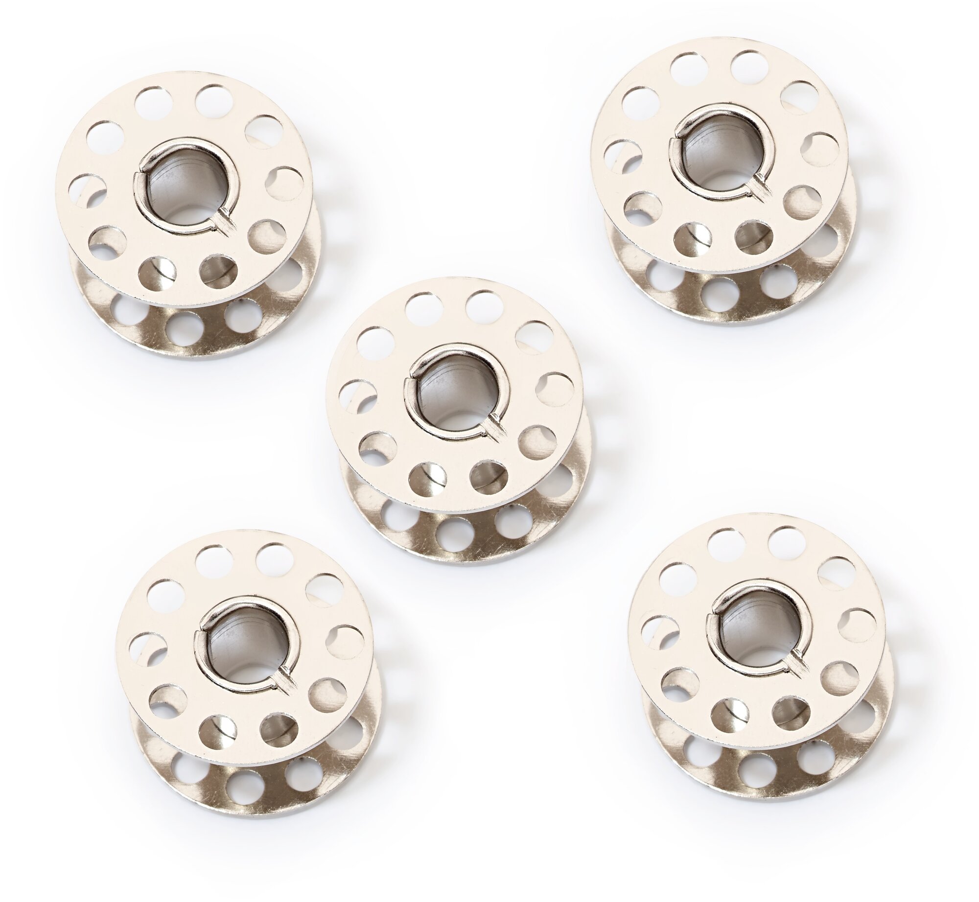 Набор шпулек из металла предназначен для бытовых швейных машин. Подходят для СВ-челнока с центральной шпулькой, который наиболее распространен. Металлические шпульки долговечны, выдерживают все стандартные нагрузки и не требуют особых условий хранения. Отверстия в шпульке позволяют быстро увидеть цвет нити и определить, сколько осталось в запасе.