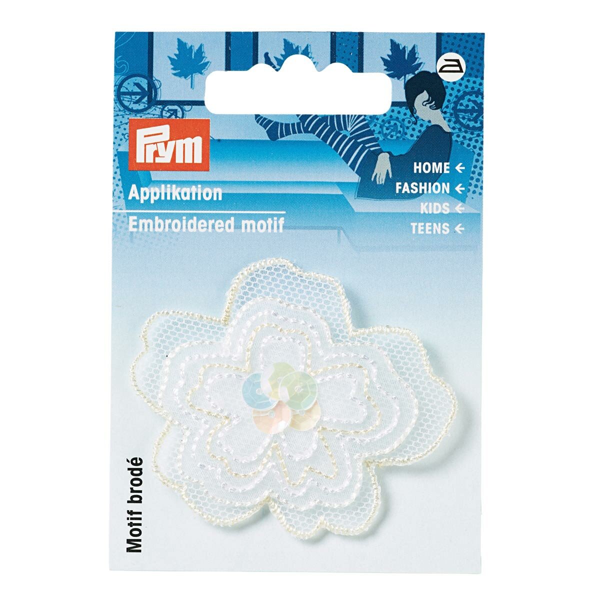 926160 Термоаппликация Цветок с пайетками органза белый цв. 1шт Prym