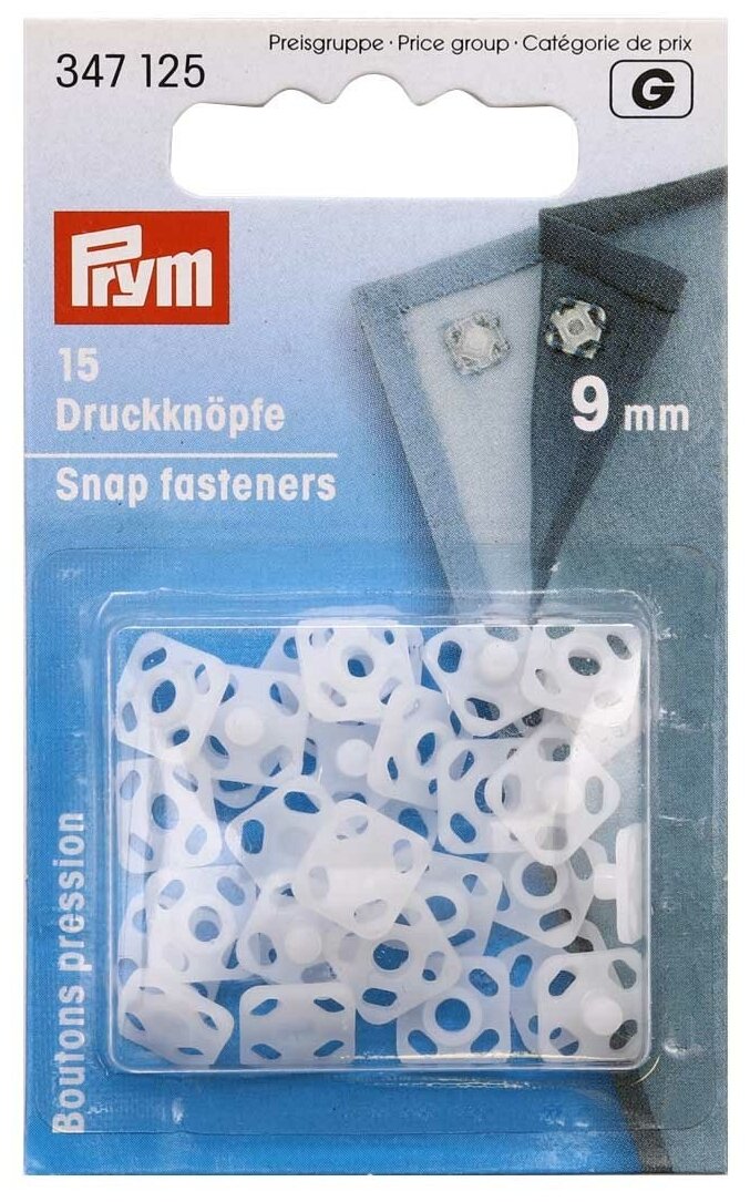 347125 Пришивные кнопки 9мм (пластик) квадрат. белые Prym