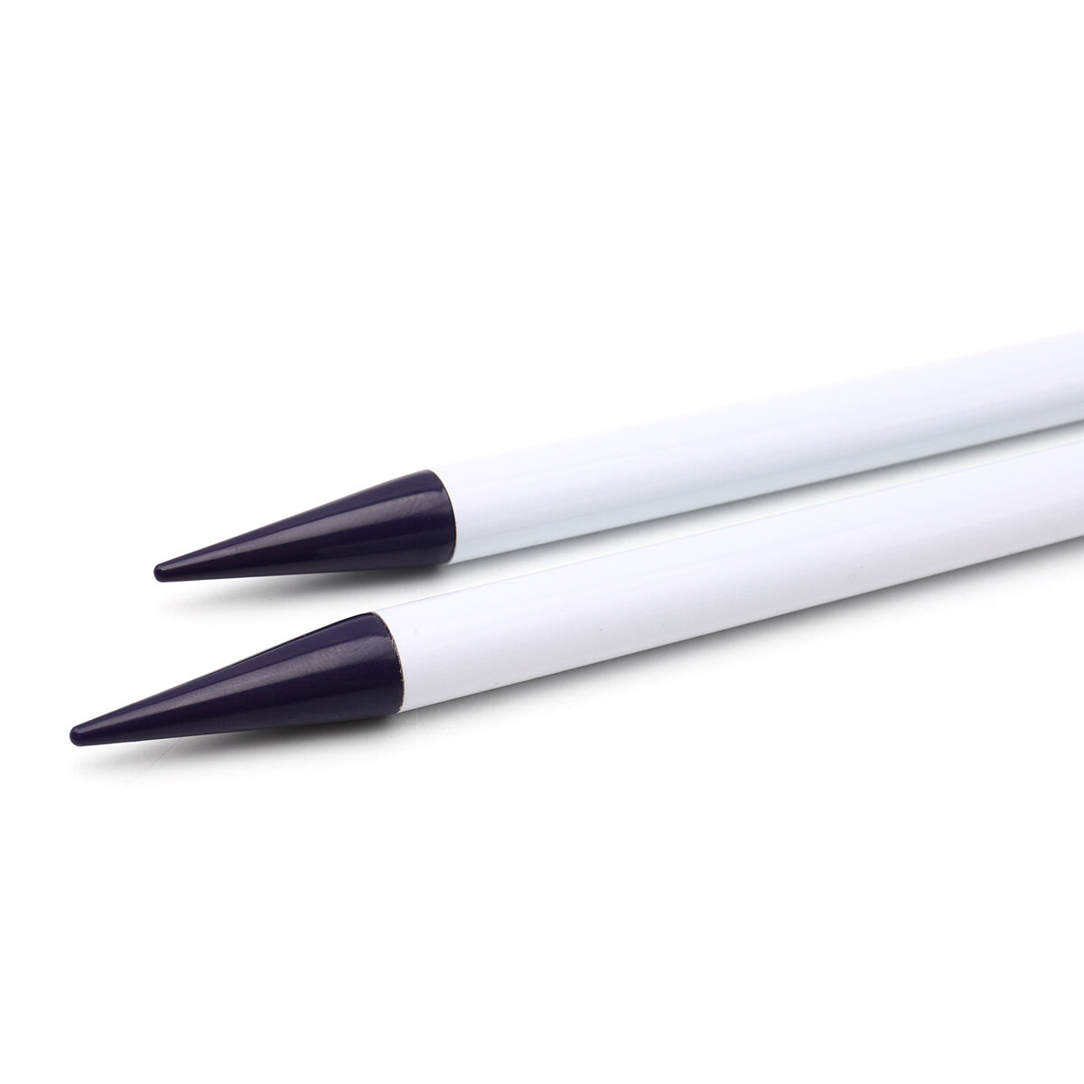 Прямые пластиковые спицы с ограничителем. Имеют большой диаметр (12 мм) и стандартную длину (40 см), идеально подходят для работы с толстой пряжей из различных материалов – акрила, шерсти, хлопка, полиэстера. Пластик – легкий и приятный на ощупь материал, спицы не травмируют пальцы, их можно доверить даже детям, не стучат при работе. Концы в форме конуса обеспечивают удобное скольжение петель.