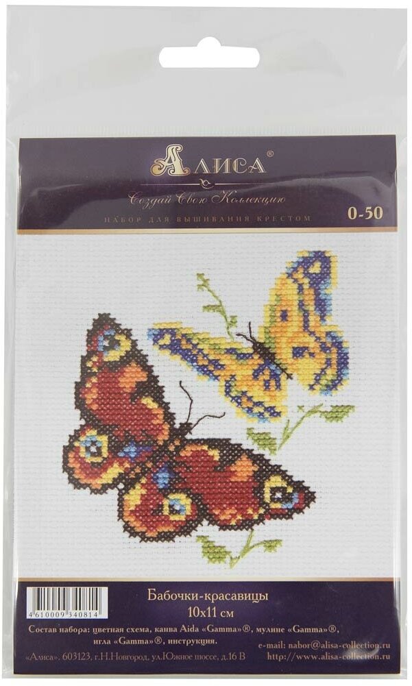 0-50 Набор для вышивания АЛИСА 'Бабочки-красавицы' 10*11см