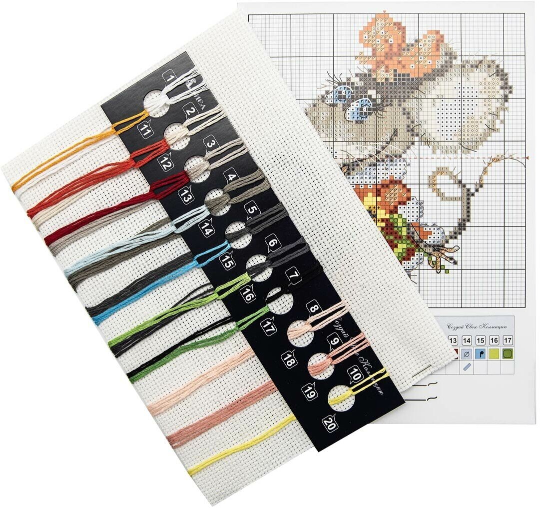 В наборе: канва Aida 14, хлопковые мулине, цветная схема, игла, инструкция.