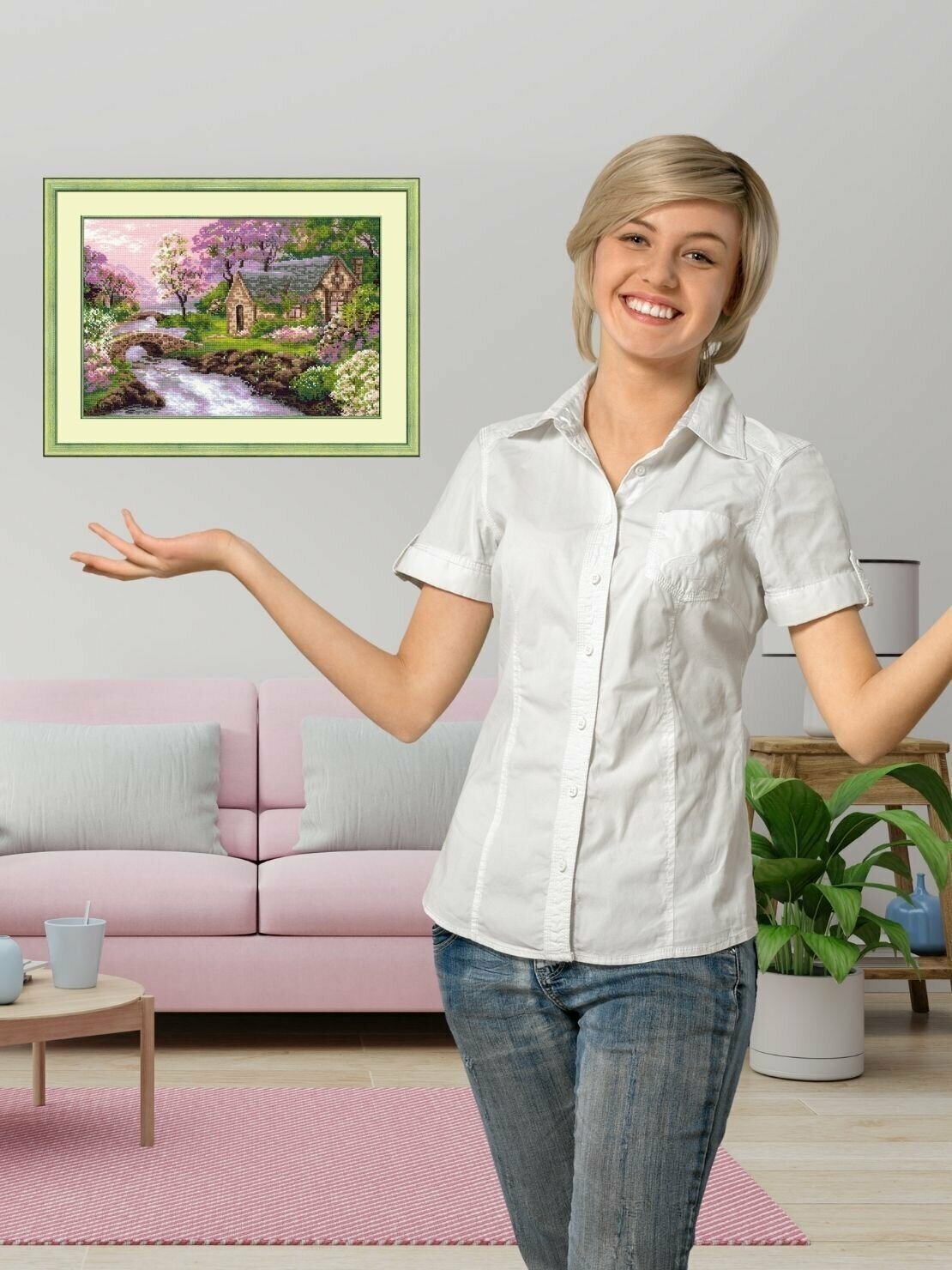 Вышивка 'Весенний пейзаж' поможет создать уютную атмосферу, удивит гостей и подарит вам репутацию умелой рукодельницы.