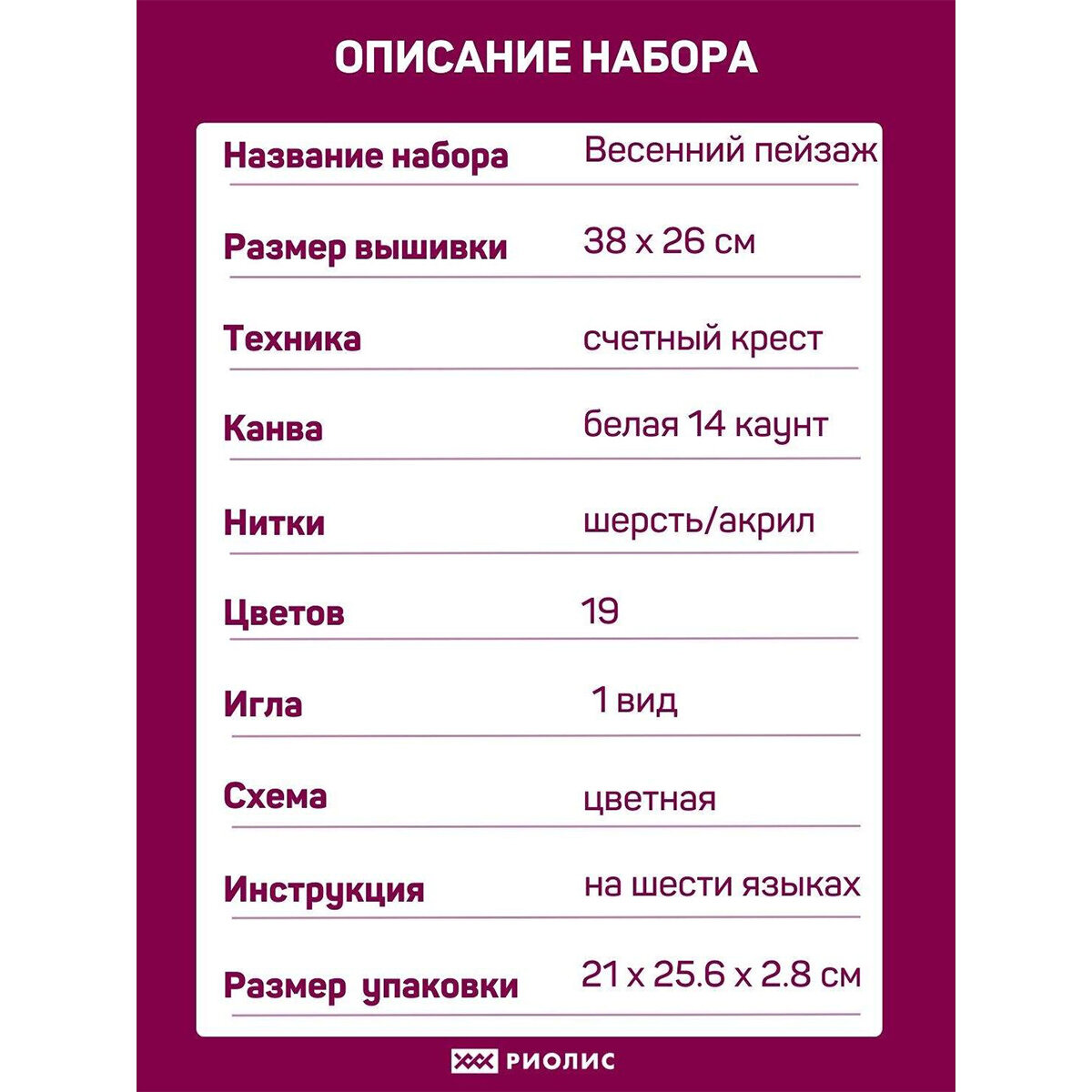Наборы для вышивания Риолис
