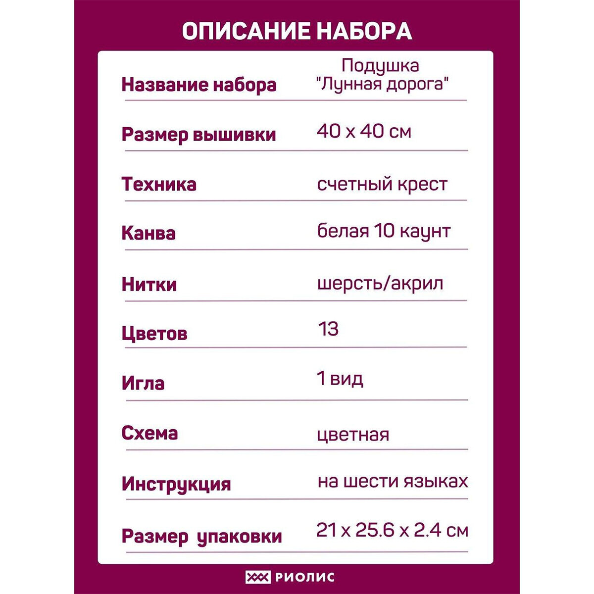 1092 Набор для вышивания Riolis 'Подушка 'Лунная дорога' 40*40 см Риолис
