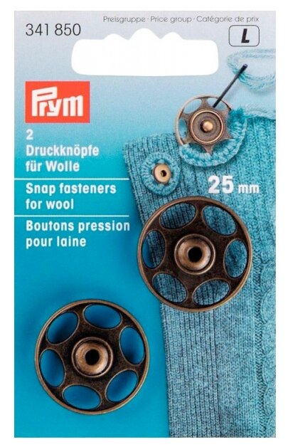341850 Пришивная кнопка для шерсти состаренная латунь 25 мм упак./2 шт. Prym