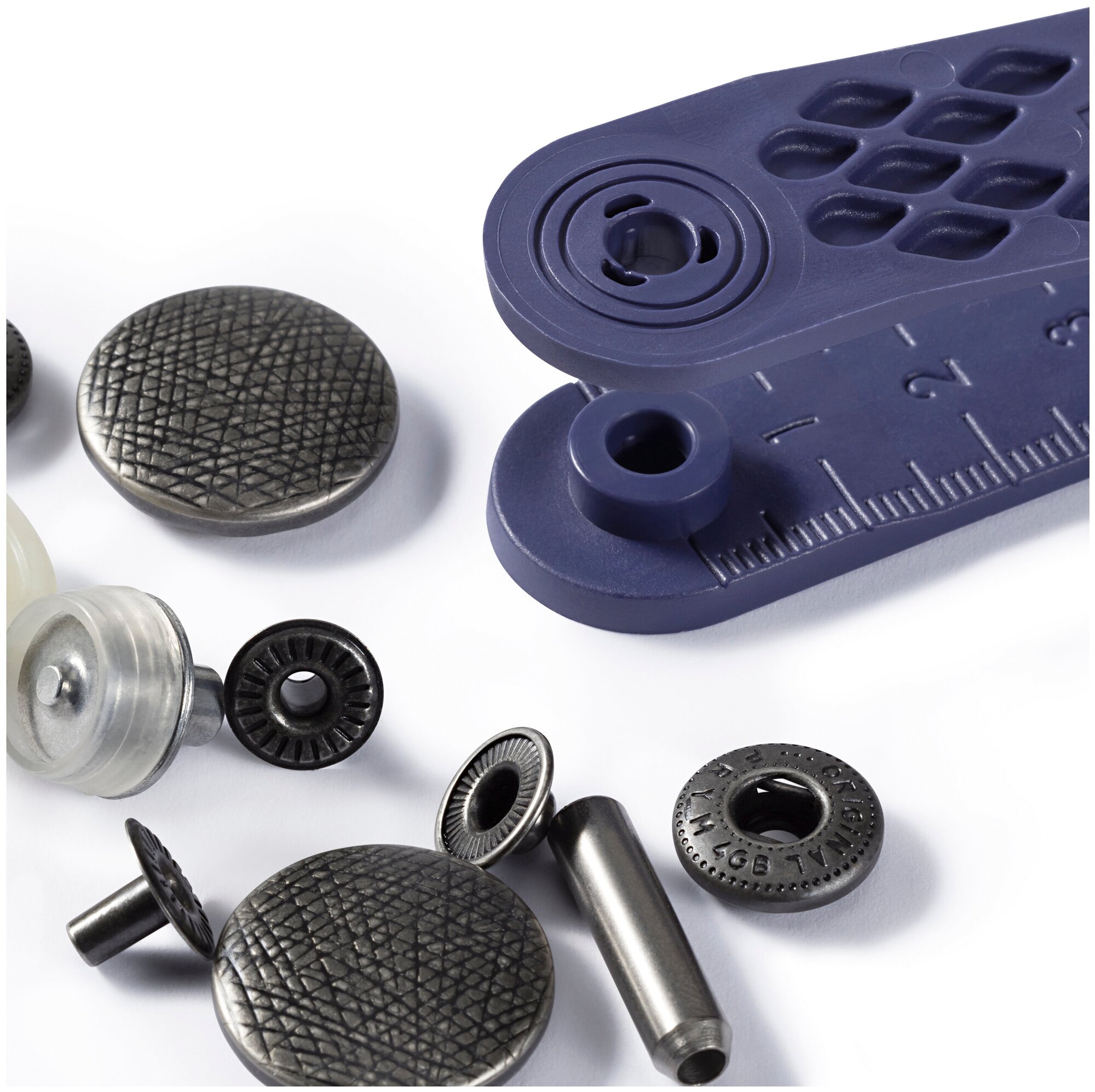 – Кнопки устанавливаются на одежду с помощью специального инструмента.