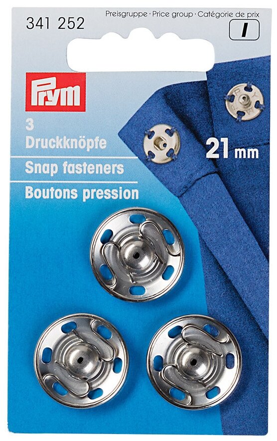 341252 Пришивные кнопки 21мм (латунь) упак(3шт) серебристый Prym Кнопки пришивные, 21 мм, серебристые, 341252