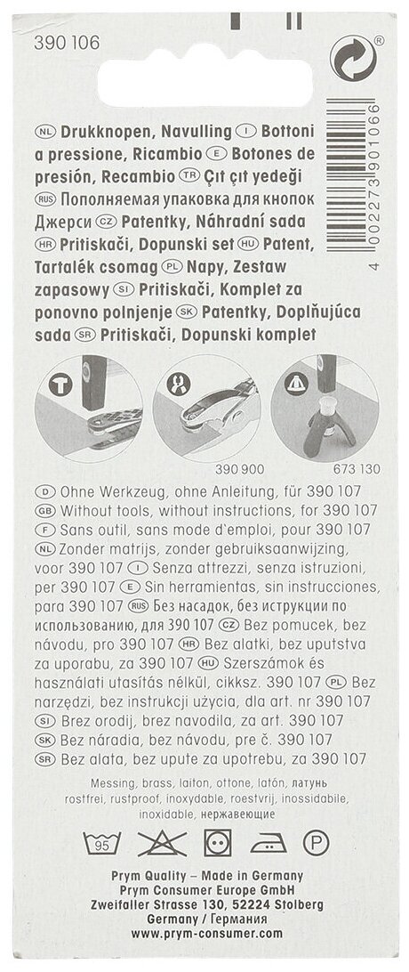 390106 Кнопки 'Джерси' к арт. 390107 10 мм упак./20 шт. Prym