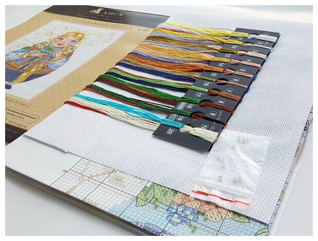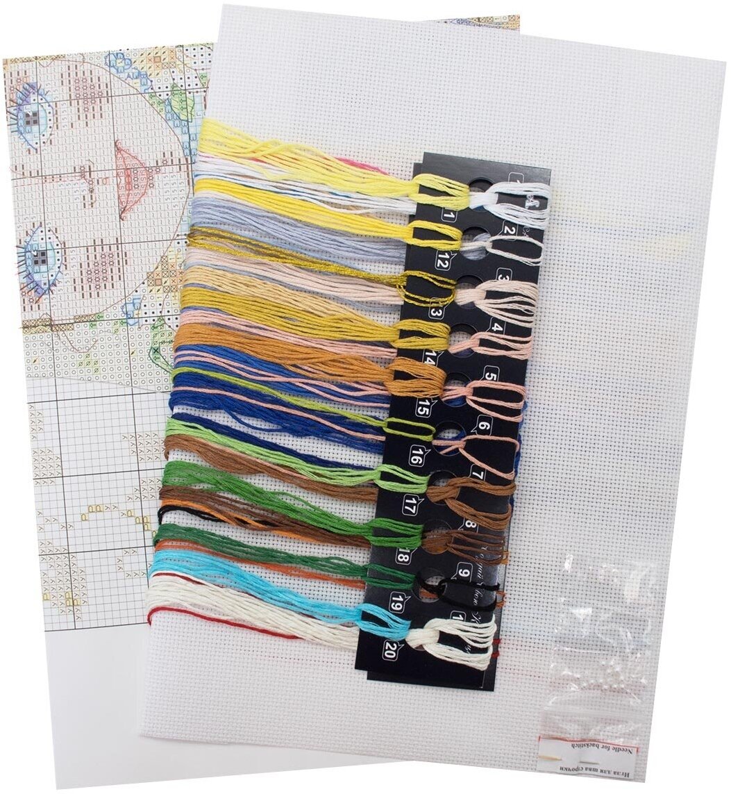 В наборе: канва Aida 16, хлопковые мулине, цветная схема, игла, инструкция.
