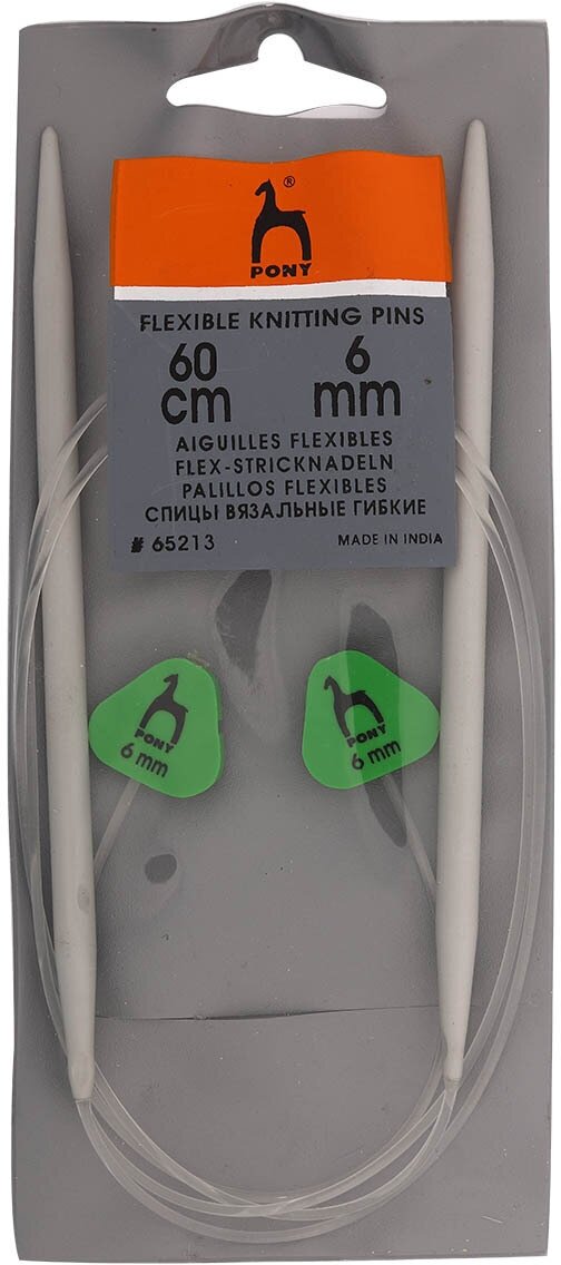 Легкие и прочные спицы Pony имеют оригинальный практичный дизайн, делающий работу с ними удобной и приятной. Твердая алюминиевая часть спицы со скругленным концом переходит в гибкий пластиковый тросик и завершается ограничителем, предотвращающим соскальзывание связанного полотна и роспуск петель. Спицы идеально подходят для вязания широкого полотна - объемных свитеров, ковриков,покрывал, а так же шарфов и крупных деталей одежды, таких как спинка и передняя часть свитера, жилетки или кофты. PONY – это всемирно известный индийский бренд, продукция которого востребована на всех континентах мира и славится своим высоким качеством и разнообразным ассортиментом товаров. Вязальные спицы PONY изготовлены из алюминия высокого качества со специальной обработкой. Благодаря электролитическому оксидированию металла спицы имеют оптимальную для вязания гладкую поверхность, отличаются высокой прочностью и упругостью, идеально защищены от коррозии. При этом светлая шерстяная пряжа от соприкосновения с ними не темнеет. Длина: 60 см Диаметр спицы: 6 мм