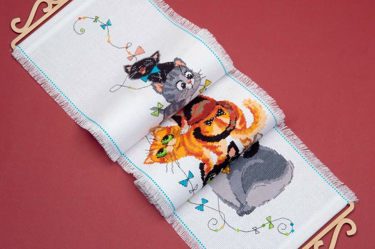 В наборе: канва Aida 14 белая, хлопковое мулине, игла, цветная схема, вешалка, подробная инструкция.