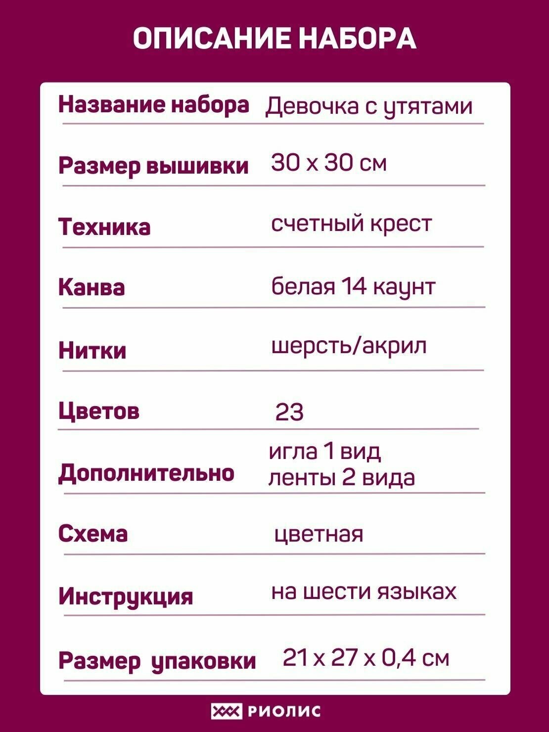 1781 Набор для вышивания Риолис 'Девочка с утятами' 30*30см