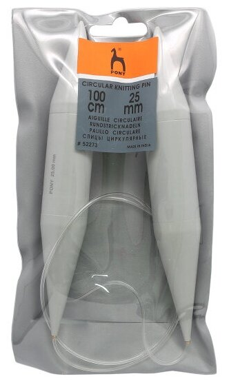 Удобные круговые спицы Pony, изготовленные из практичного легкого пластика с гибким прозрачным тросиком, идеально подходят для вязания бесшовных и крупных деталей одежды. Круговые спицы имеют запатентованное соединение с леской – GLYDON. Оно обеспечивает плавное скольжение петель при вязании. Гладкая поверхность спиц, соприкасаясь с пряжей, не нарушает структуру нити. PONY – это всемирно известный индийский бренд, продукция которого востребована на всех континентах мира и славится своим высоким качеством и разнообразным ассортиментом товаров. Спицы - это практичный для вязальщицы, она по достоинству оценит их безупречное качество. Желаем вам ровных петелек! Общая длина: 100 см Диаметр спицы: 25 мм