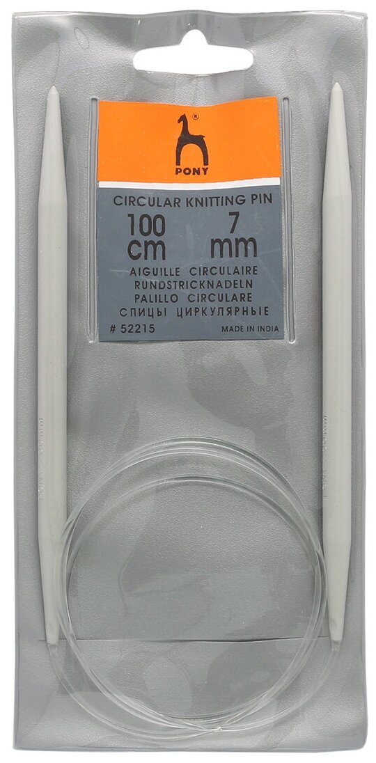 Удобные круговые спицы Pony, изготовленные из практичного алюминия с гибким прозрачным тросиком, идеально подходят для вязания бесшовных и крупных деталей одежды.