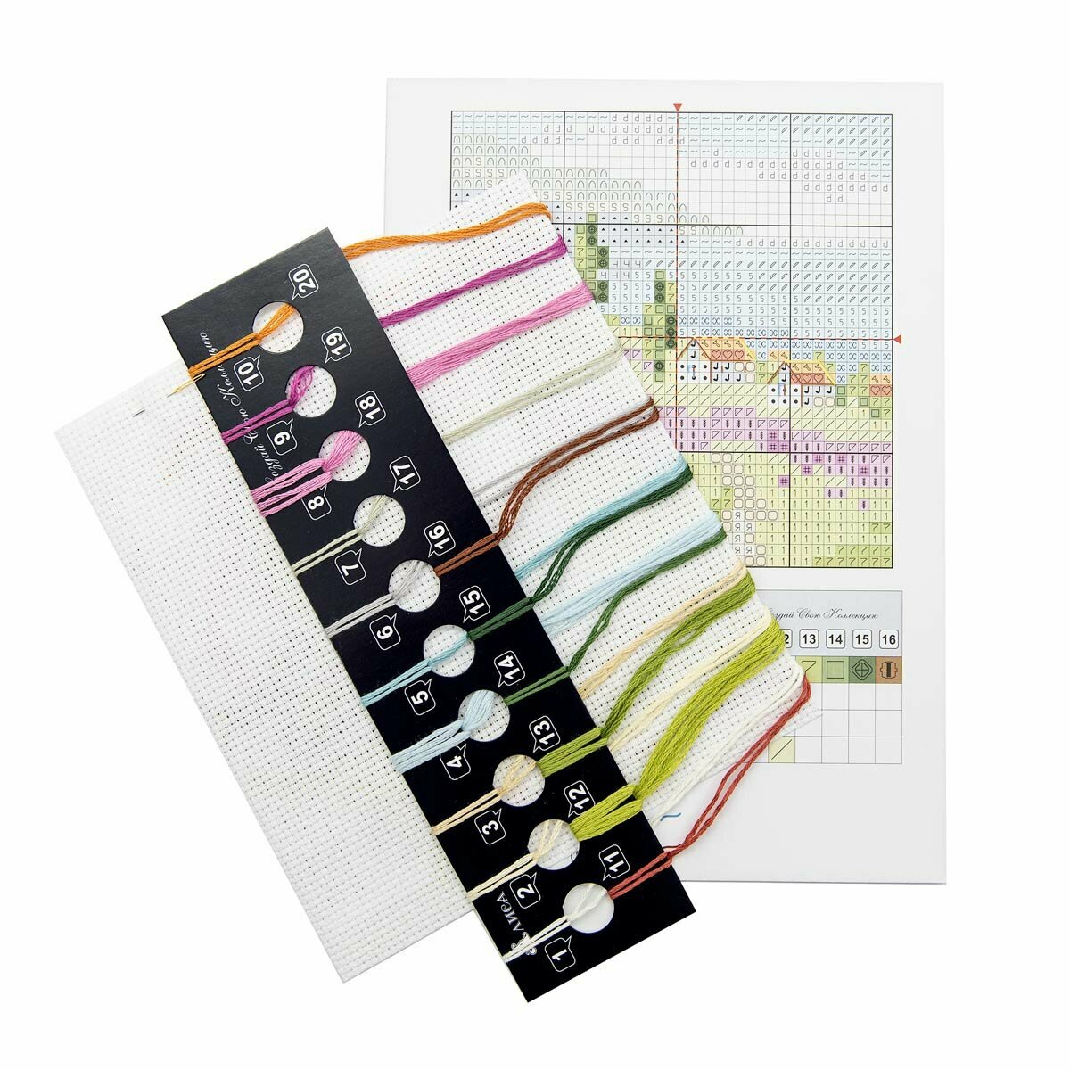 В наборе: канва Aida 14, нитки мулине, игла, цветная схема, инструкция.