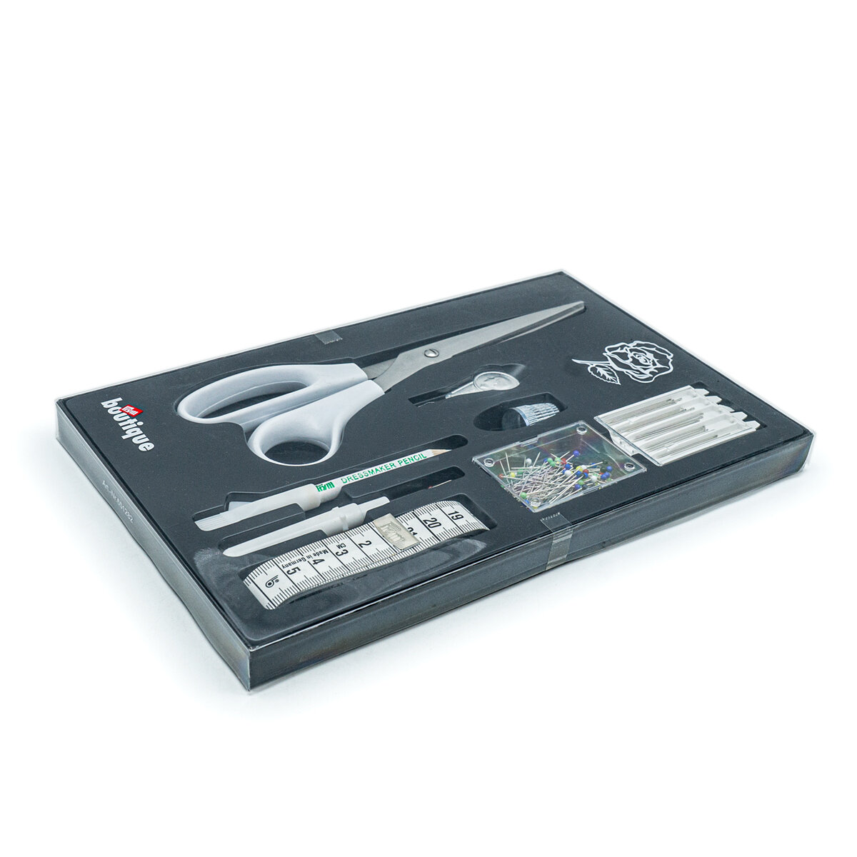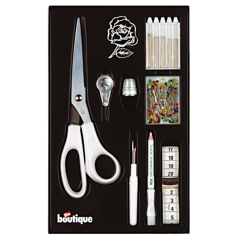 Подарочный набор швейных принадлежностей для шитья, рукоделия и мелкого ремонта. Отличный для начинающей швеи и рукодельницы.Набор состоит из ножниц, наперстка, нитевдевателя, рулетки, устройства для распарывания швов, 10 г булавок со стеклянными головками, 25 швейных игл и мелового карандаша.Разработано немецкой компанией Prym, известным мировым лидером в производстве высококачественных принадлежностей для шитья и рукоделия. Ежедневно используя продукцию Prym, Вы ощутите заботу компании о Вашем комфорте и удобстве. Шейте с удовольствием, радуйте модными шедеврами себя и своих близких!