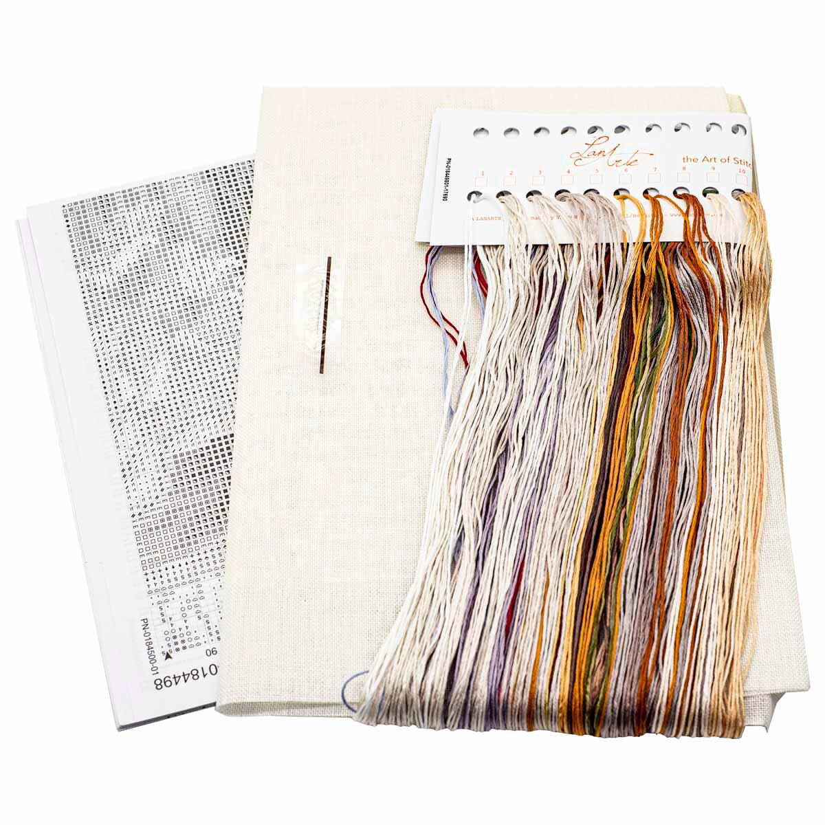В наборе: канва равномерного переплетения Evenweave Zweigart 30 ct (100% лен), хлопковые мулине DMC (36 цветов), разобранное на органайзере, игла, черно-белая символьная схема, инструкция на восьми языках.