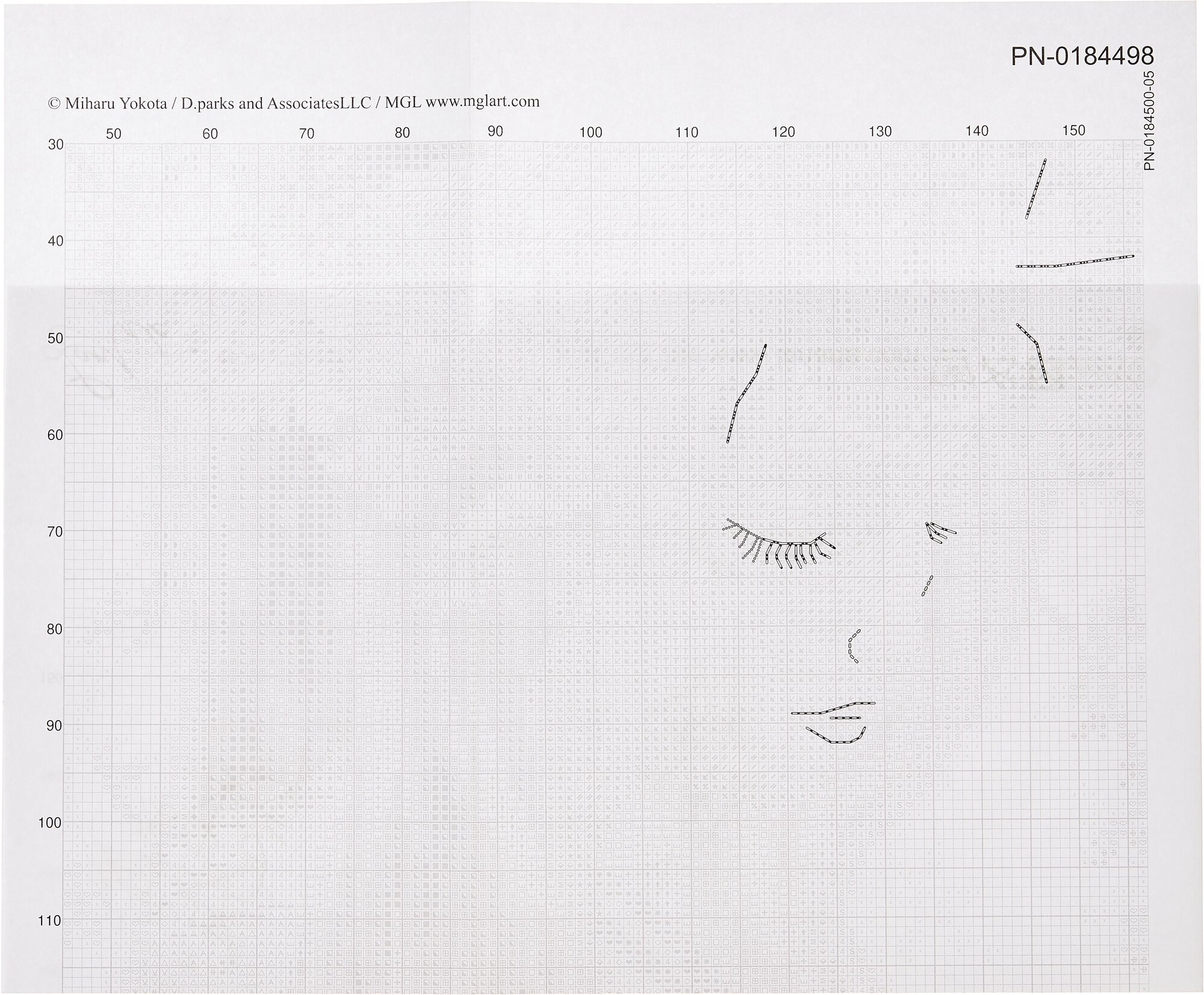 Для удобства рекомендуется нанести на канву разметку водорастворимым маркером. Техника вышивания: крест, обратный стежок, французский шов.