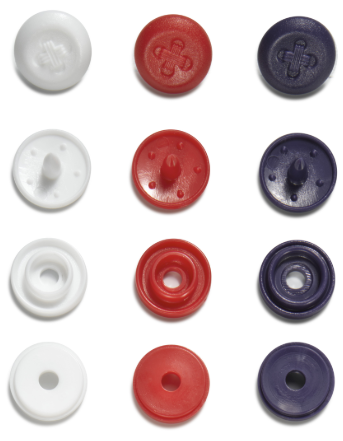 Кнопки ʹColor Snapsʹ из серии ʹPrym Loveʹ с оригинальным дизайном 'имитация стежка'. Подходят для детской одежды – курток, жилетов, джемперов. Допускается использовать при пошиве постельного белья.