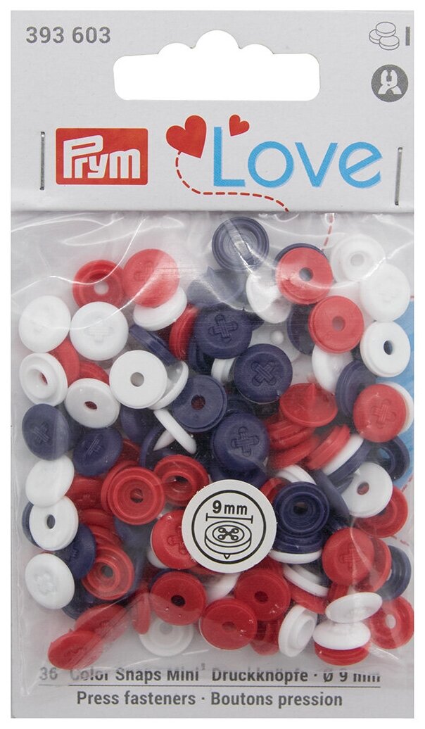 393603 Кнопки ColorSnapsMini имитация стежка Prym Love красн/бел/син 36шт Prym