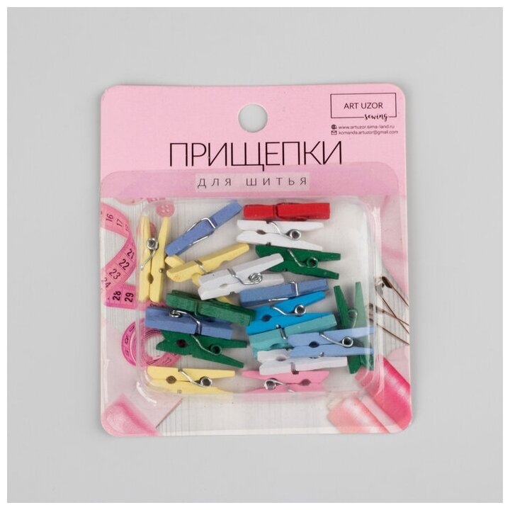 137882 Прищепки для шитья 25*05*03см (упак/18шт) МИКС блистер Арт Узор