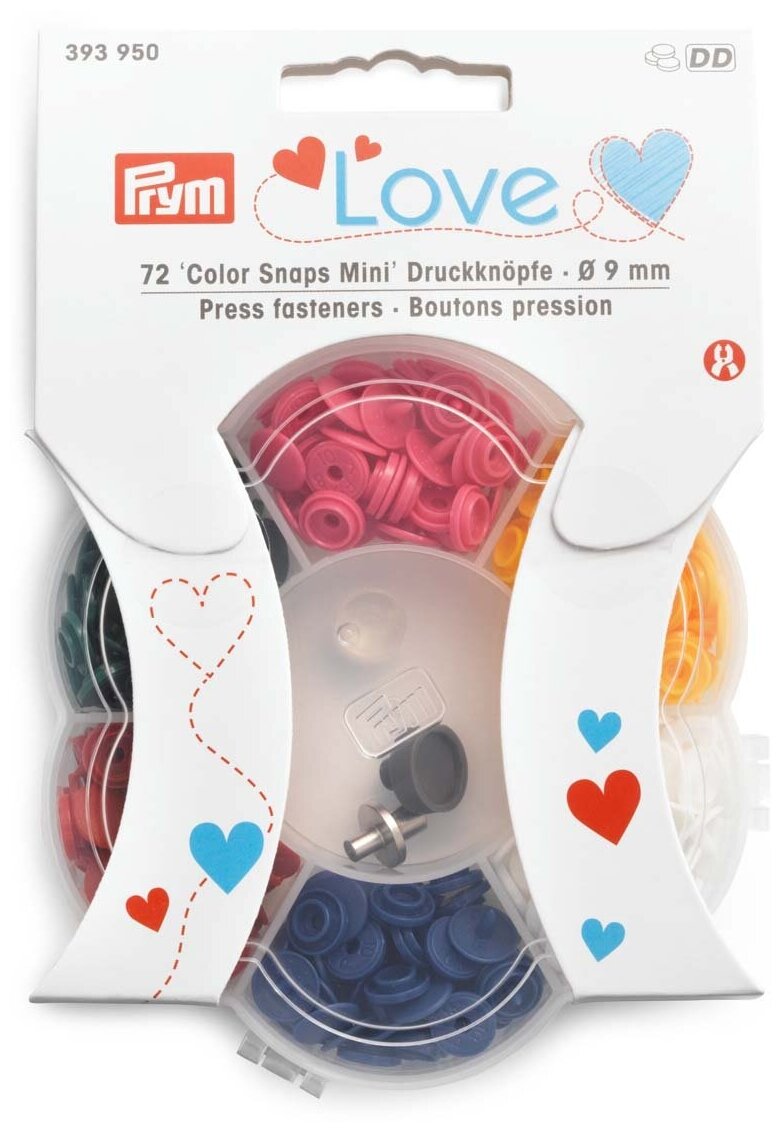 393950 Набор кнопок Color Snaps Mini 6цв.72шт. с установочным инструментом Prym