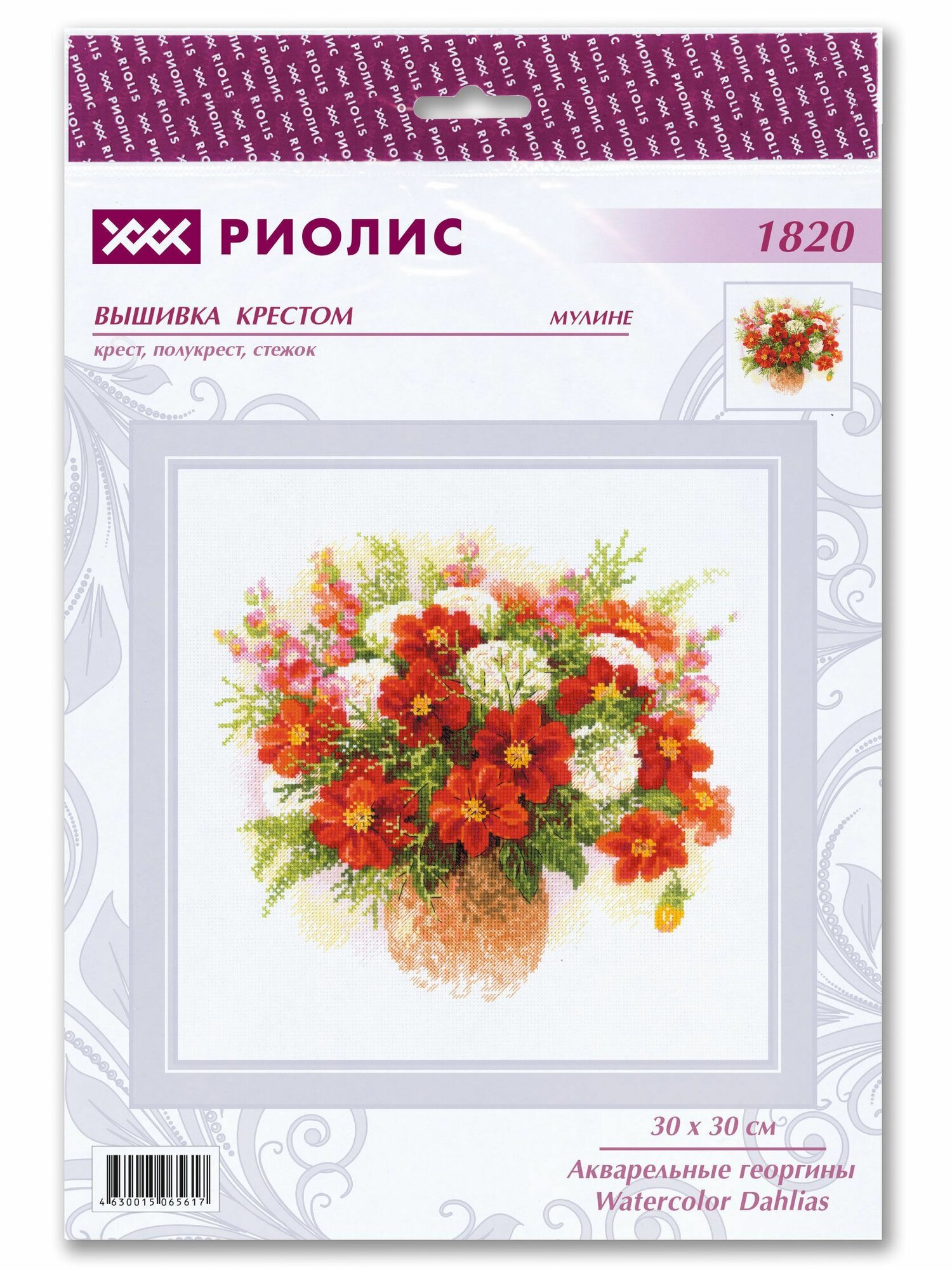 1820 Набор для вышивания Риолис 'Акварельные георгины'30*30см