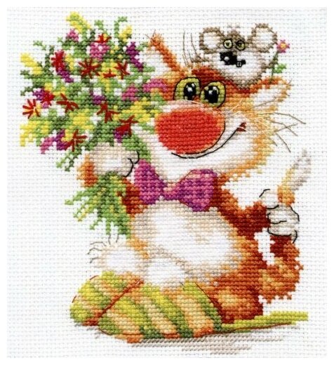 В наборе: канва Aida 14, хлопковые мулине, цветная схема, игла, инструкция.