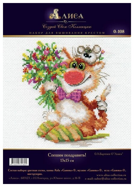 0-108 Набор для вышивания АЛИСА 'Спешим поздравить!' 13*15см