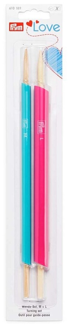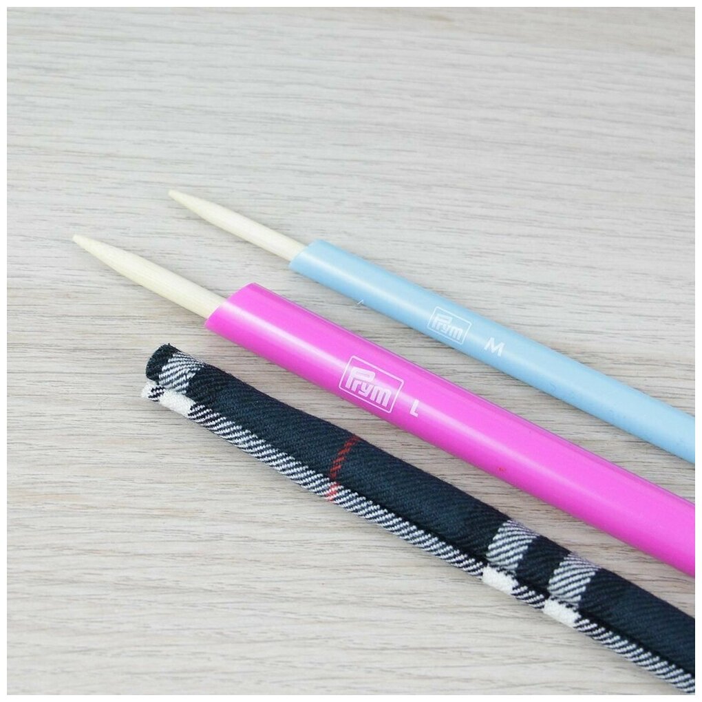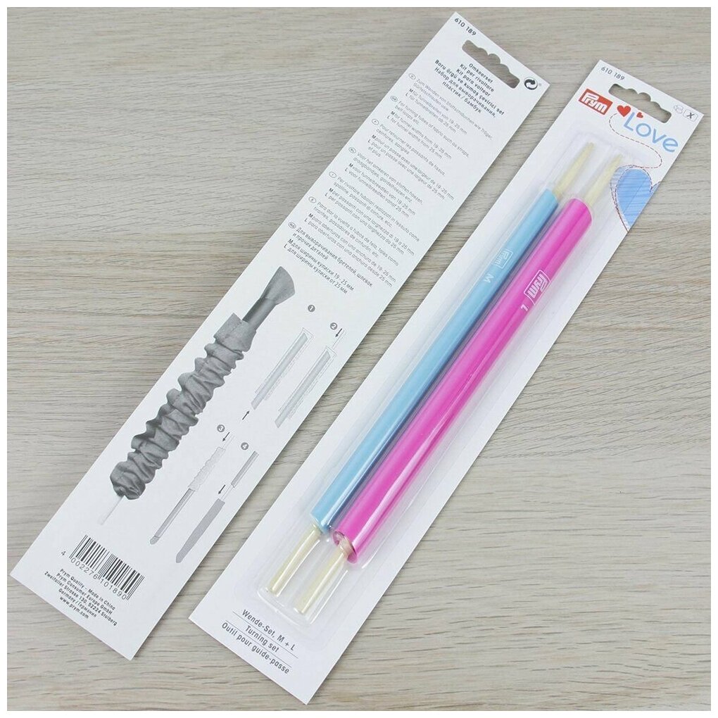 Набор для выворачивания кулисок, тканевых поясков, ручек для сумок, шлевок. Инструмент состоит из пластиковой трубки, на которую надевается кулиска, и бамбуковой палочки, с помощью которой ткань проталкивается через трубку. В наборе инструмент двух размеров: М - для ширины кулиски 19-25 мм, L - от 25 мм. Разработан немецкой компанией Prym, известным мировым лидером в производстве высококачественных принадлежностей для шитья и рукоделия. Выполнен в серии Prym Love. Отличительной чертой этой серии является сочетание изысканного дизайна с безупречным качеством изделий. Наличие такого набора у мастерицы значительно облегчит и ускорит выполнение работы. А приятный дизайн инструмента добавит удовольствия от рукоделия.