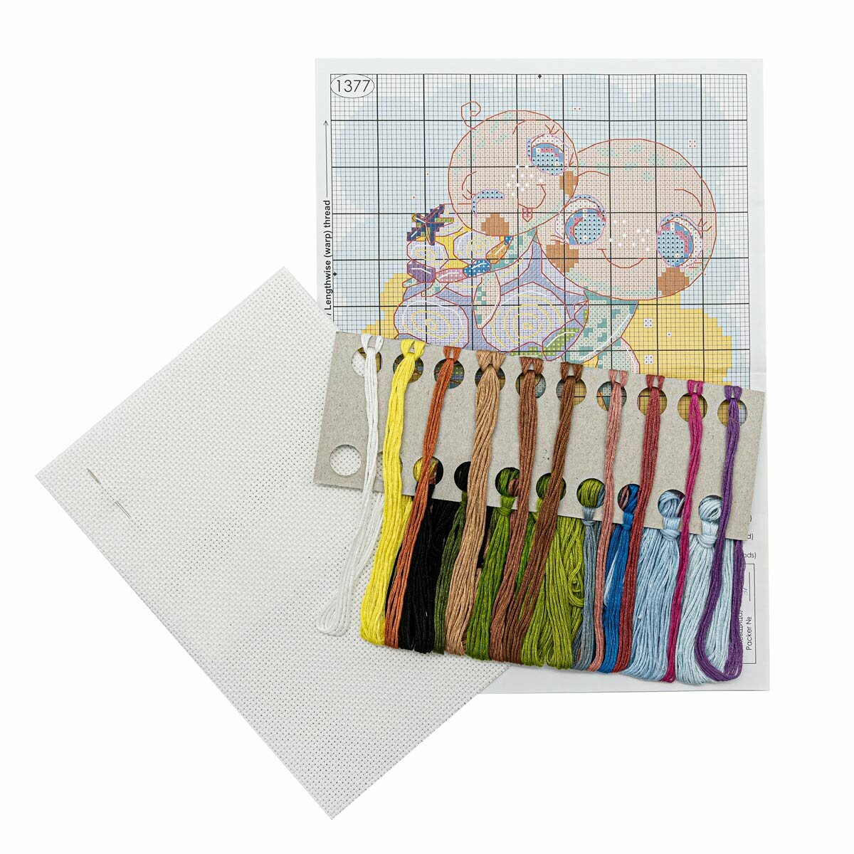 | Комплектация | Канва белого цвета №14 100% хлопок; Нитки мулине 100% хлопок (18 цветов); Игла; Цветная схема; Инструкция на русском языке |