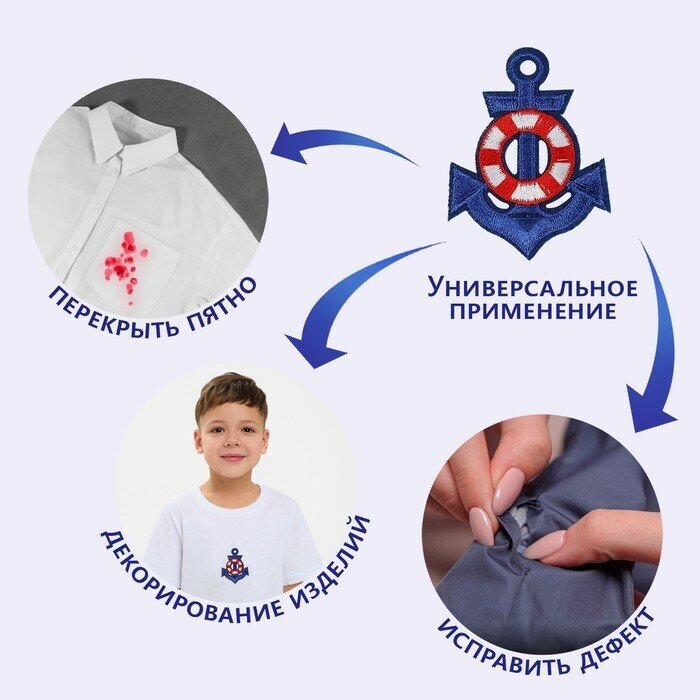 Вышитая термоаппликация 'Якорь' – модная деталь, которой украшают вещи, а также для маскируют поврежденные участки. Идеально подходит для детской и молодежной одежды. Лучший материал для аппликаций – плотные хлопковые и льняные ткани. Украсьте аппликацией рюкзак, джинсовую куртку, панаму или комбинезон, и они приобретут индивидуальный облик.