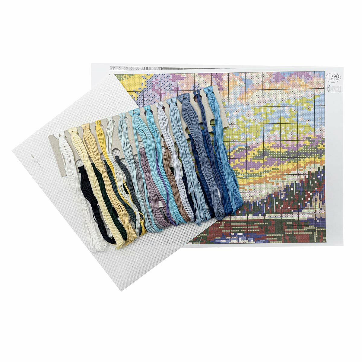 | Комплектация | Канва белого цвета №16 Zweigart 100% хлопок; Нитки мулине 100% хлопок (25 цветов); Игла; Цветная схема; Инструкция на русском языке |