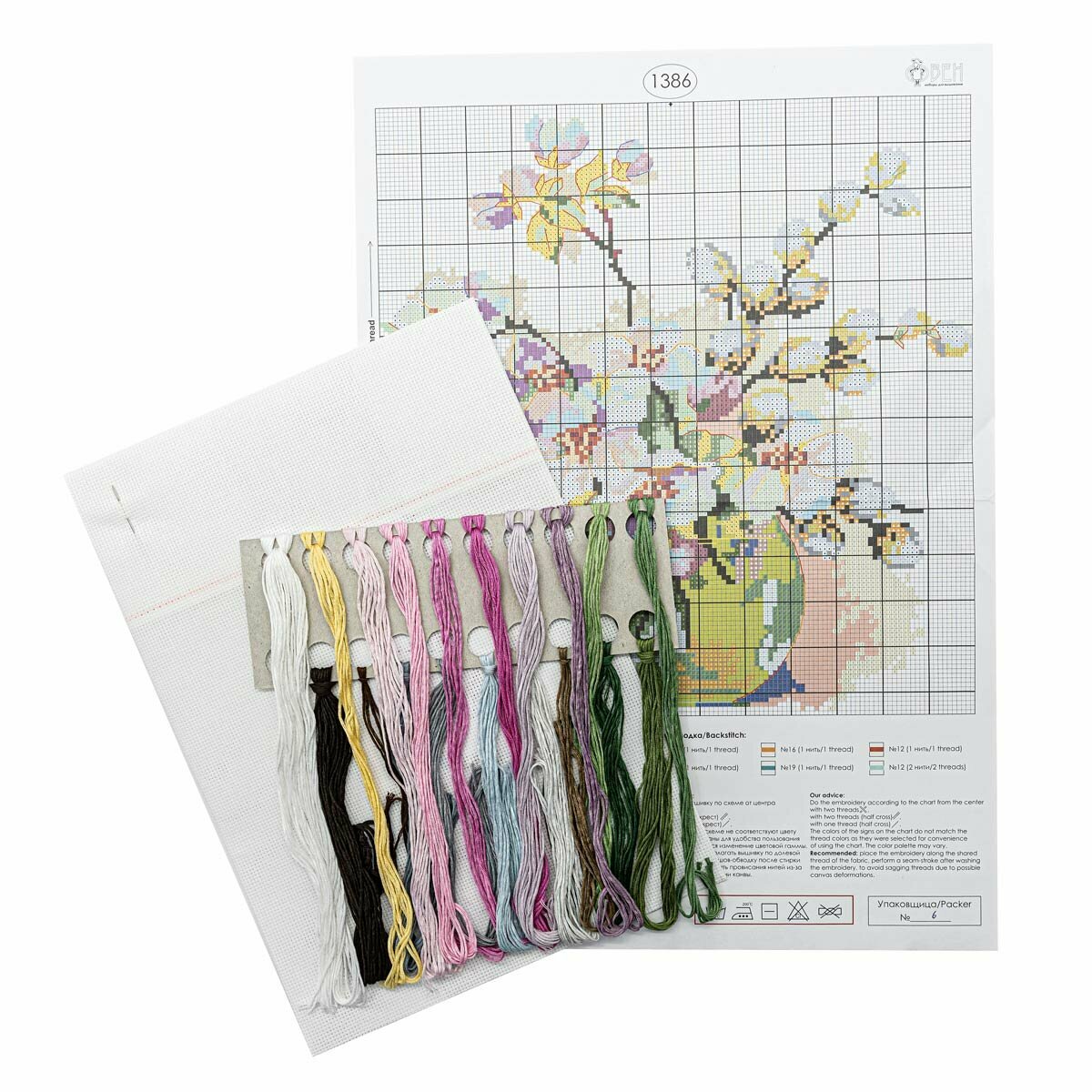 | Комплектация | Канва белого цвета №16 Zweigart 100% хлопок; Нитки мулине 100% хлопок (19 цветов); Игла; Цветная схема; Инструкция на русском языке |