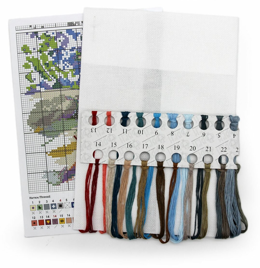 В наборе: канва Aida 16, нитки мулине, цветная символьная схема, игла, инструкция.
