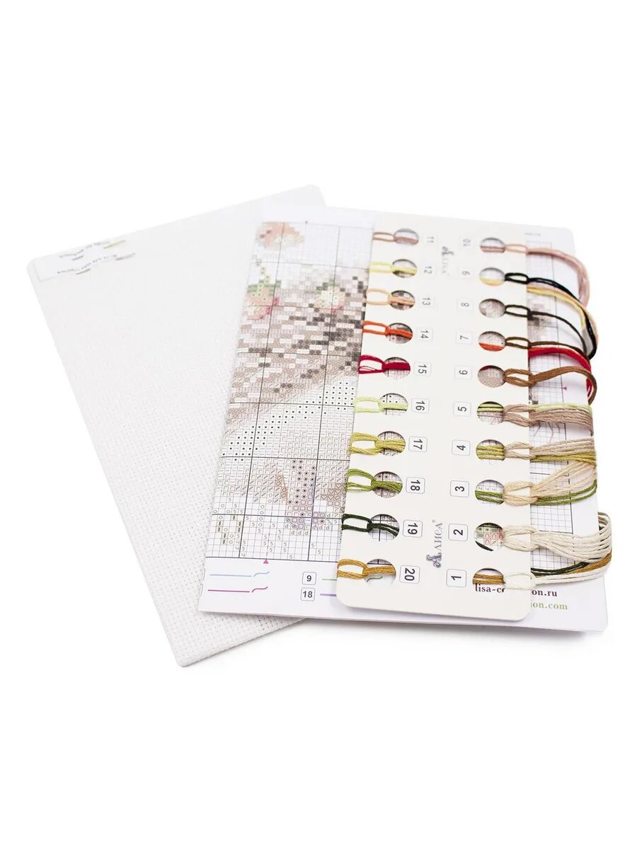В наборе: канва Aida 14, хлопковые мулине, цветная схема, игла, инструкция.