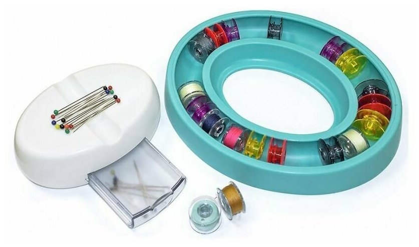 Органайзер для шпулек и булавок разработан немецкой компанией Prym, известным мировым лидером в производстве качественных принадлежностей для шитья и рукоделия. Органайзер выпущен в серии Prym Love. Отличительной чертой этой серии является сочетание изысканного дизайна с безупречным качеством изделий.Помимо компактного хранения шпулей, органайзер можно использовать как магнитную игольницу. Игольницу и кольцо используют как вместе, так и по отдельности. В кольцо помещается до 30 шпулей, с которых не будут разматываться нитки. Выемка в игольнице облегчает работу с булавками. Снизу в игольнице находится небольшой съемный контейнер для булавок. Все необходимое будет всегда под рукой, а внешний вид органайзера доставит эстетическое удовольствие. Количество: 1 штука.