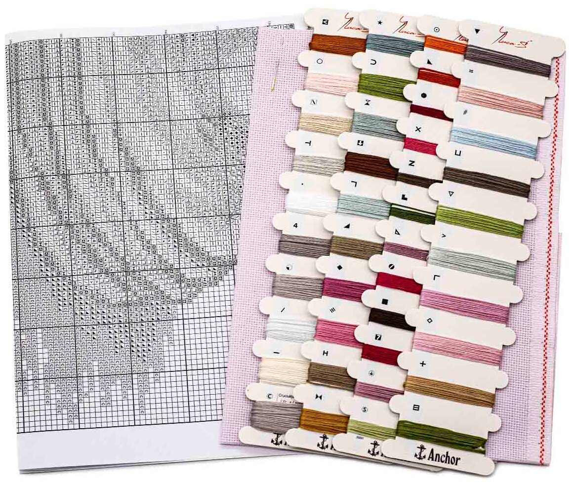 | Комплектация | канва Aida 16 ct Zweigart - 1 шт; нити для вышивания Anchor - 42 цвета; игла - 1 шт; схема - 1 шт; инструкция |