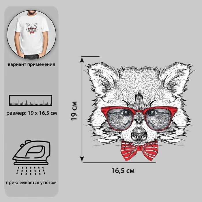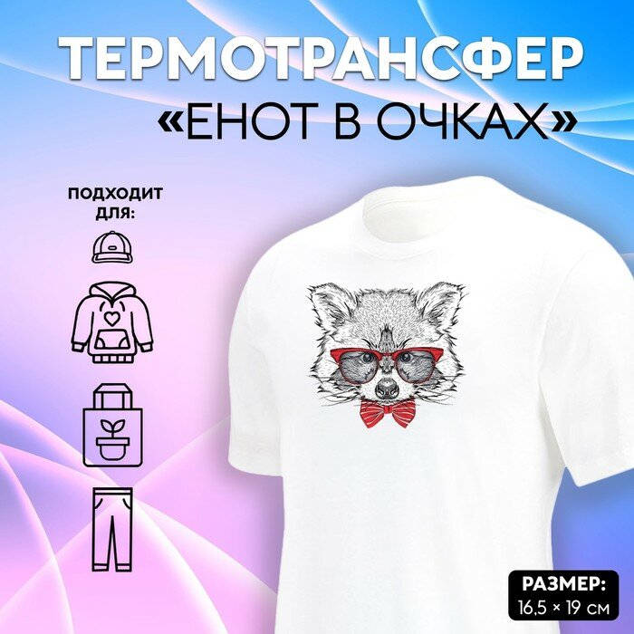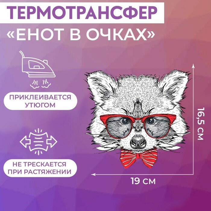 5220986 Термотрансфер енот в очках 165*19см упак/5шт Арт Узор
