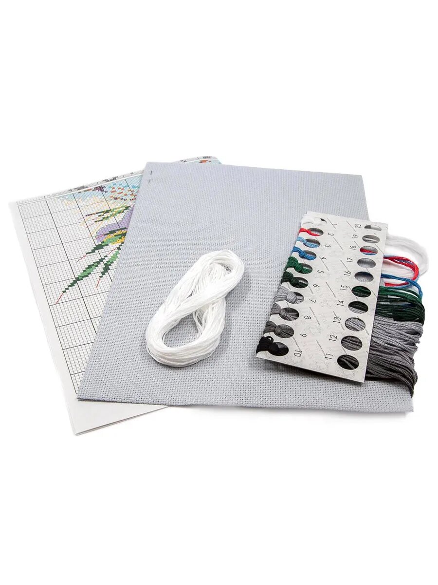 В наборе: канва Aida 16 ZWEIGART серая, нитки мулине DMC, игла, цветная символьная схема, инструкция.