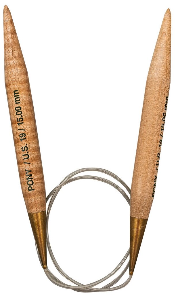 Легкие и прочные круговые спицы Pony, изготовленные из древесины клена и объединенные гибким прозрачным тросом, идеально подходят для вязания бесшовных и крупных деталей одежды, таких как ворот или горловина, спинка или передняя часть свитера.