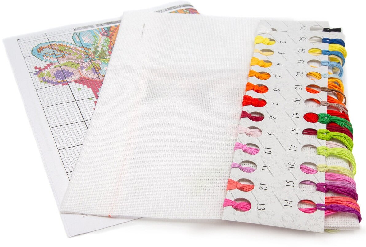 В наборе: канва Aida 16 ct белая, мулине ПНК им. Кирова, игла, схема, инструкция.