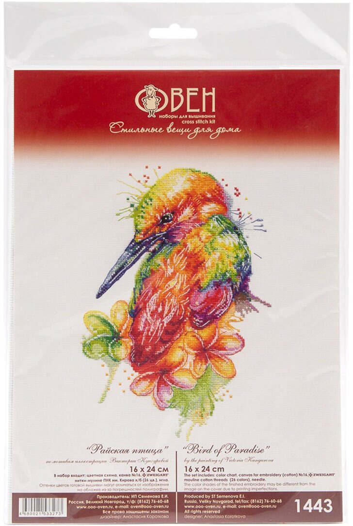 1443 Набор для вышивания ОВЕН 'Райская птица' 16*24см