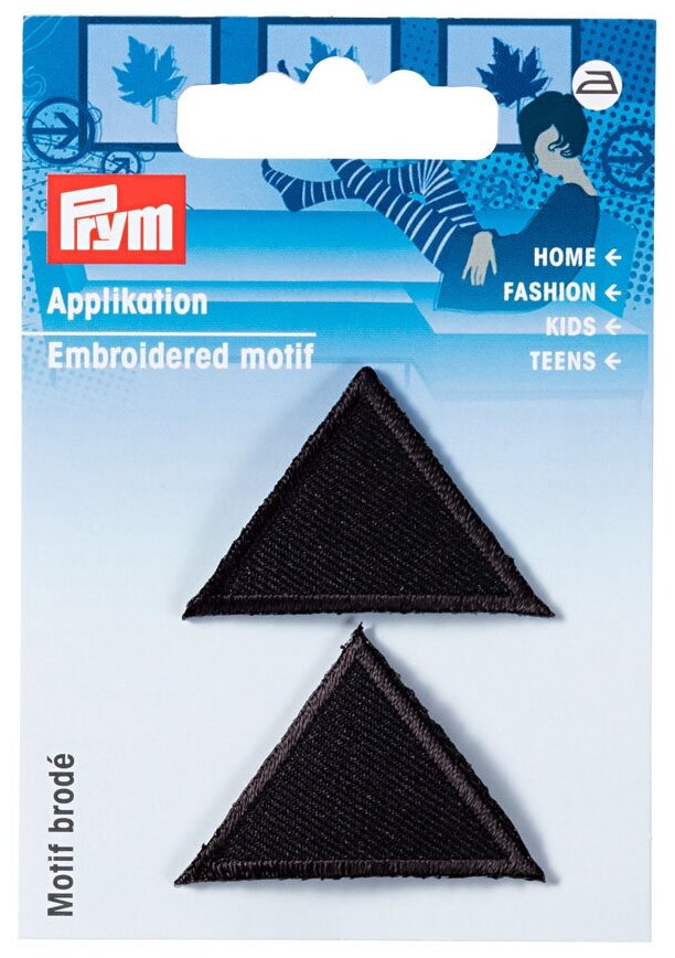 Апликации термоклеевые треугольной формы, черного цвета. Подходят для ремонта и маскировки поврежденных участков на одежде, рюкзаках,сумках, кепках и др., а также часто применяются в качестве модных аппликаций. Прикрепляются с помощью горячего утюга, при необходимости заплатку можно усилить ручной или машинной строчкой. Ежедневно используя продукцию Prym, Вы ощутите заботу компании о Вашем комфорте и удобстве. Воплощайте любую Вашу творческую идею с безупречным материалом Prym!Цвет: Черный.Количество: 2 шт. в упаковке.